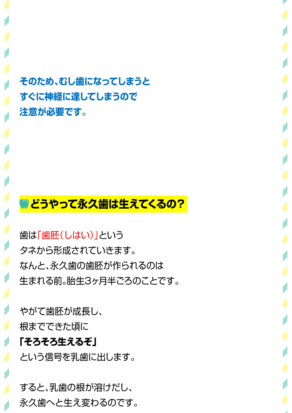 大人の歯と子どもの歯は何が違うの? 投稿日:2024年8月27日 カテゴリ:Smile Letter ■ 他の記事を読む■ « 抜歯後に気をつけること!ドライソケットとは!? 「痛みがなくなってラッキー」は大間違い!大切な歯の神経 »